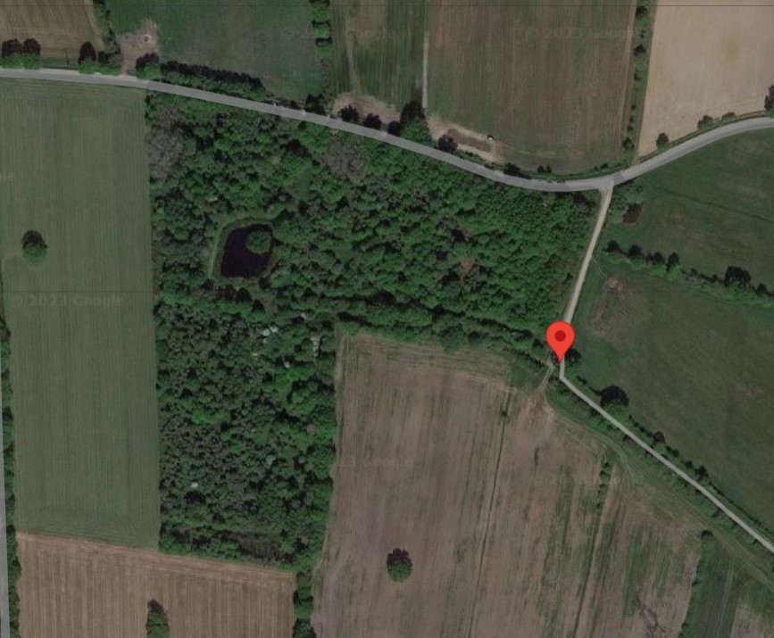 Une petit allée borde le bois. Vous pouvez vous garer sur le bas côté, en faisant attention au fossé.